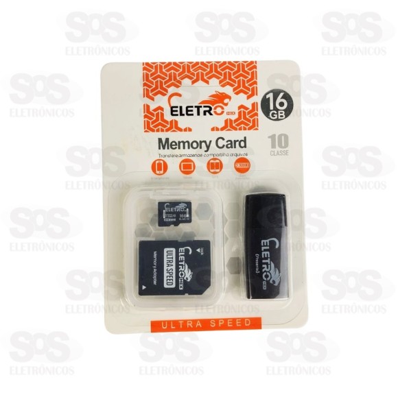 Cartão De Memória 16GB Com Adaptador SD E Leitor de Cartão Eletromex EL-MC-16