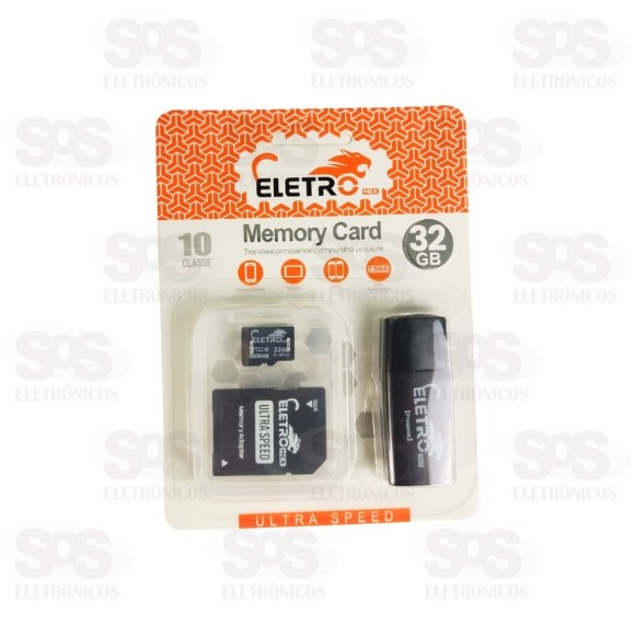 Cartão De Memória 32GB Com Adaptador SD E Leitor de Cartão Eletromex EL-MC-32