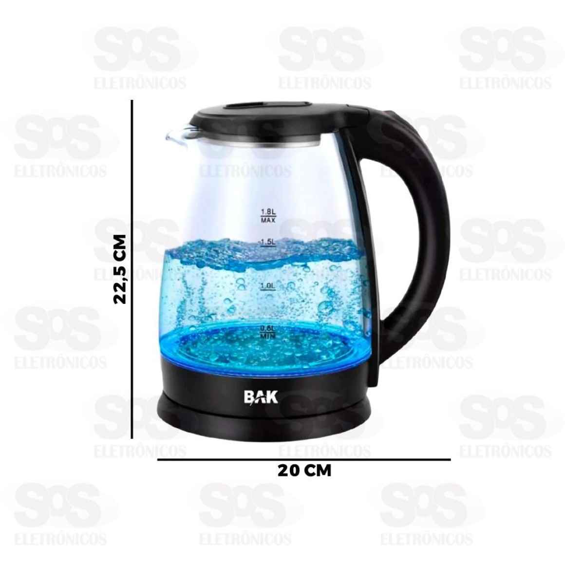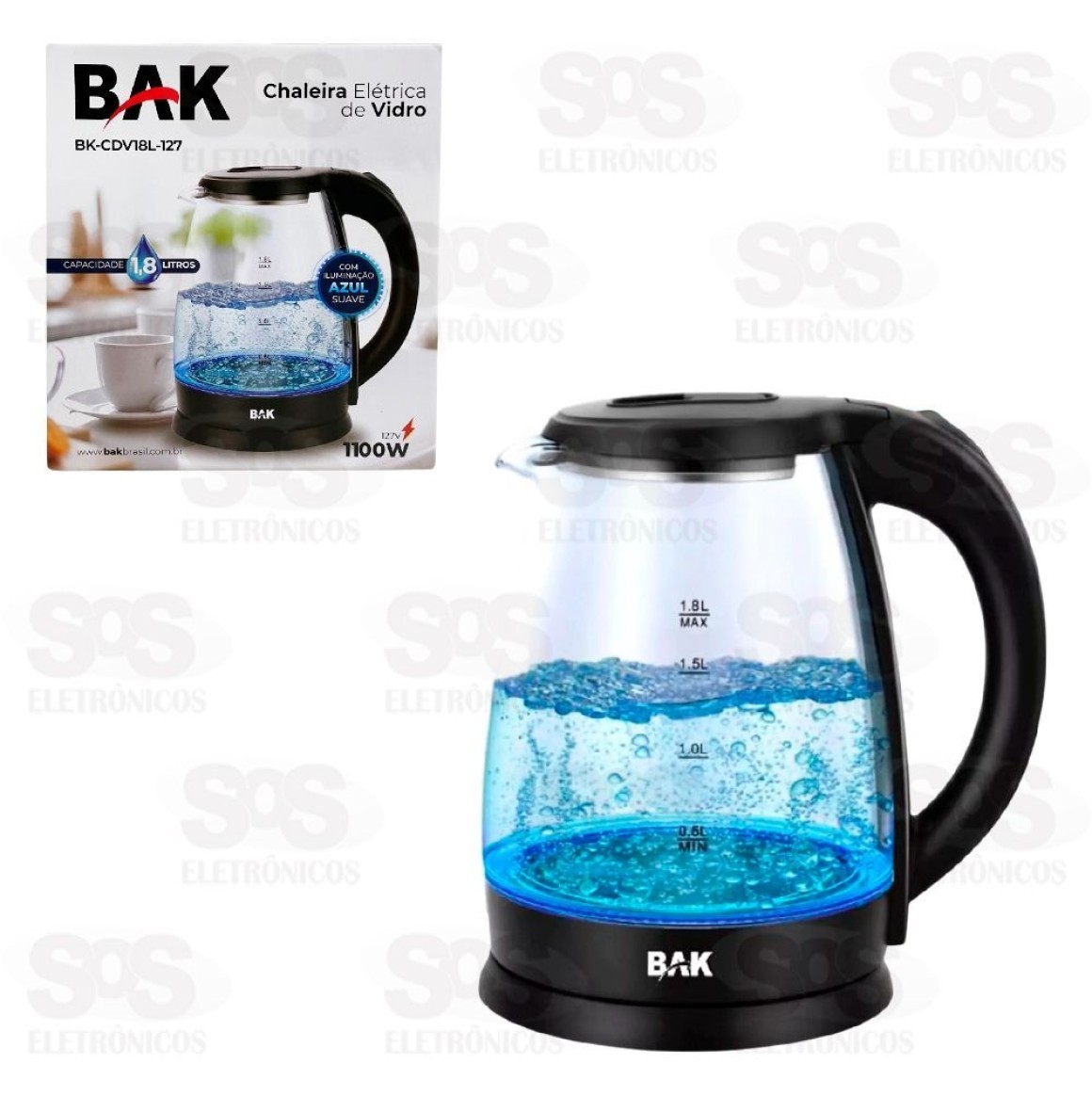 Chaleira Elétrica De Vidro 1.8 Litros 1100W Bak BK-CDV18L-127