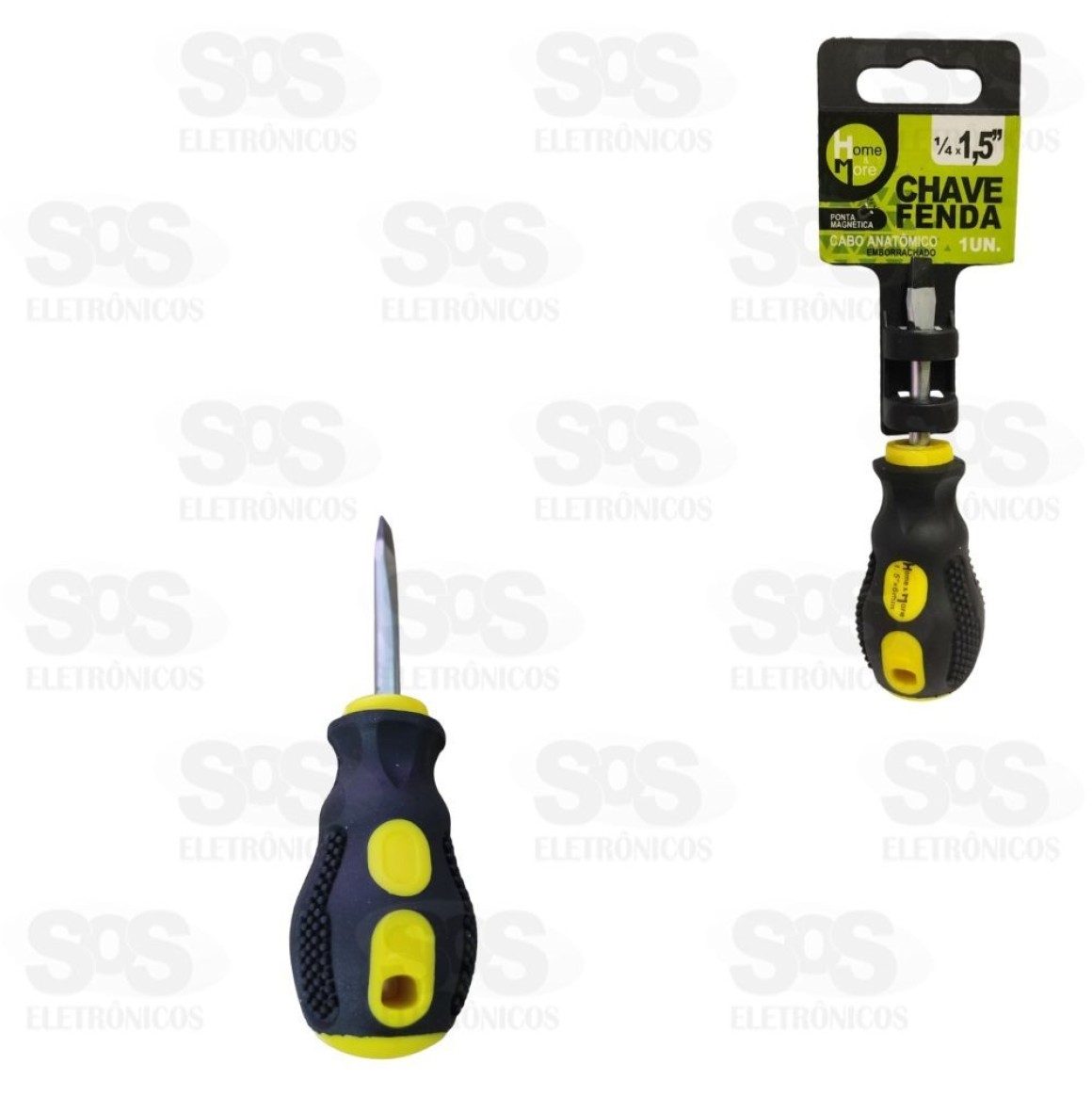 Para afrouxar e apertar parafusos e dispositivos com cabeça de fenda; Cabo anatômico e emborrachado 11cm Nas cores preta e amarela