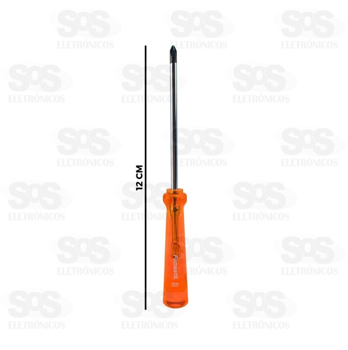 Chave philips em cromo vanádio e cabo reforçado em PVC transparente.