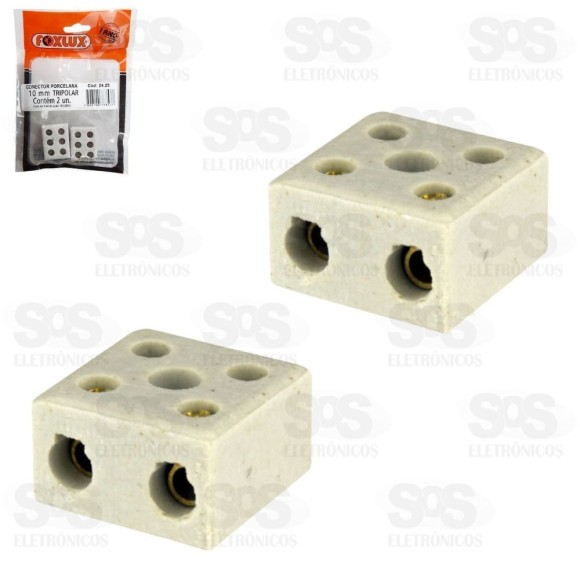 2. Conector Porcelana 10MM 2P Com 2 Unidades Foxlux 24.23