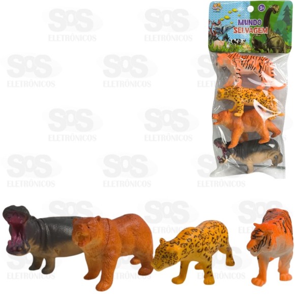 Conjunto Animais Selvagens Com Acessórios 4 Peças Toy King