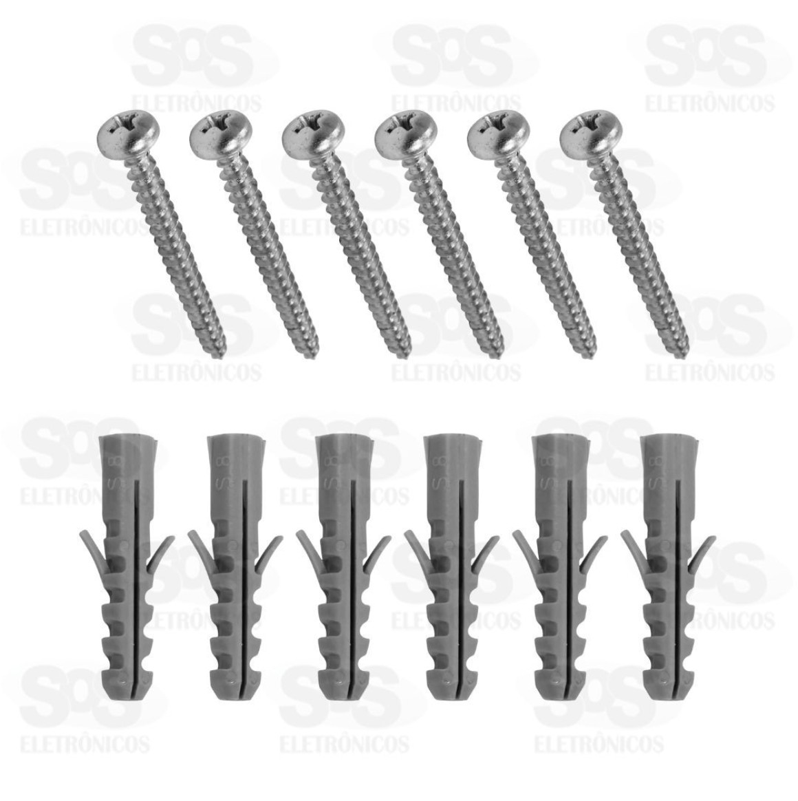 Acompanha 6 parafusos e 6 buchas.