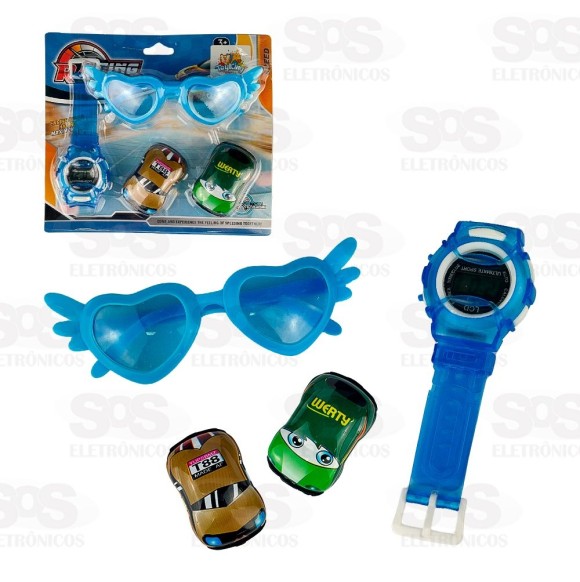 Conjunto Relógio E Óculos Com Carrinhos Toy King TK-AB6298