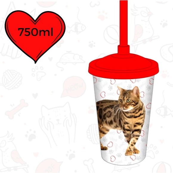 Copo Plástico Com Canudo 750ML Cat Bengal 0184A