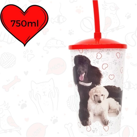 Copo Plástico Com Canudo 750ML Dog Poodle 0167A