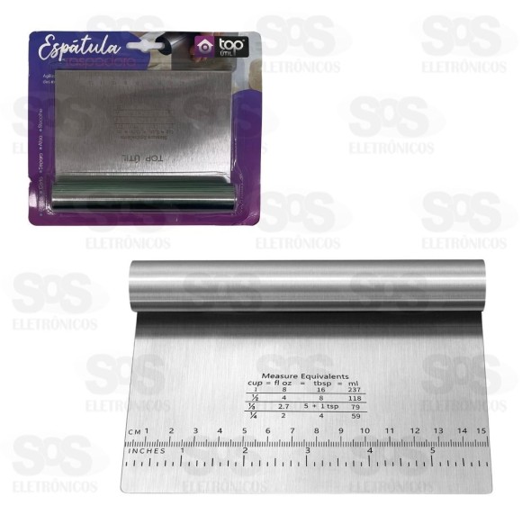 Espátula Raspadora Aço Inox Top Útil TOP1322 Ideal para raspar, misturar, cortar, juntar, medir ou finalizar. Essa espátula é essencial para a realização da maioria das deliciosas receitas. Lâmina com medidor em centímetros, você conseguirá mensurar exatamente a quantidade que precisa para seu prato favorito. Feita em aço inox. Tamanho: 15 x 12 cm