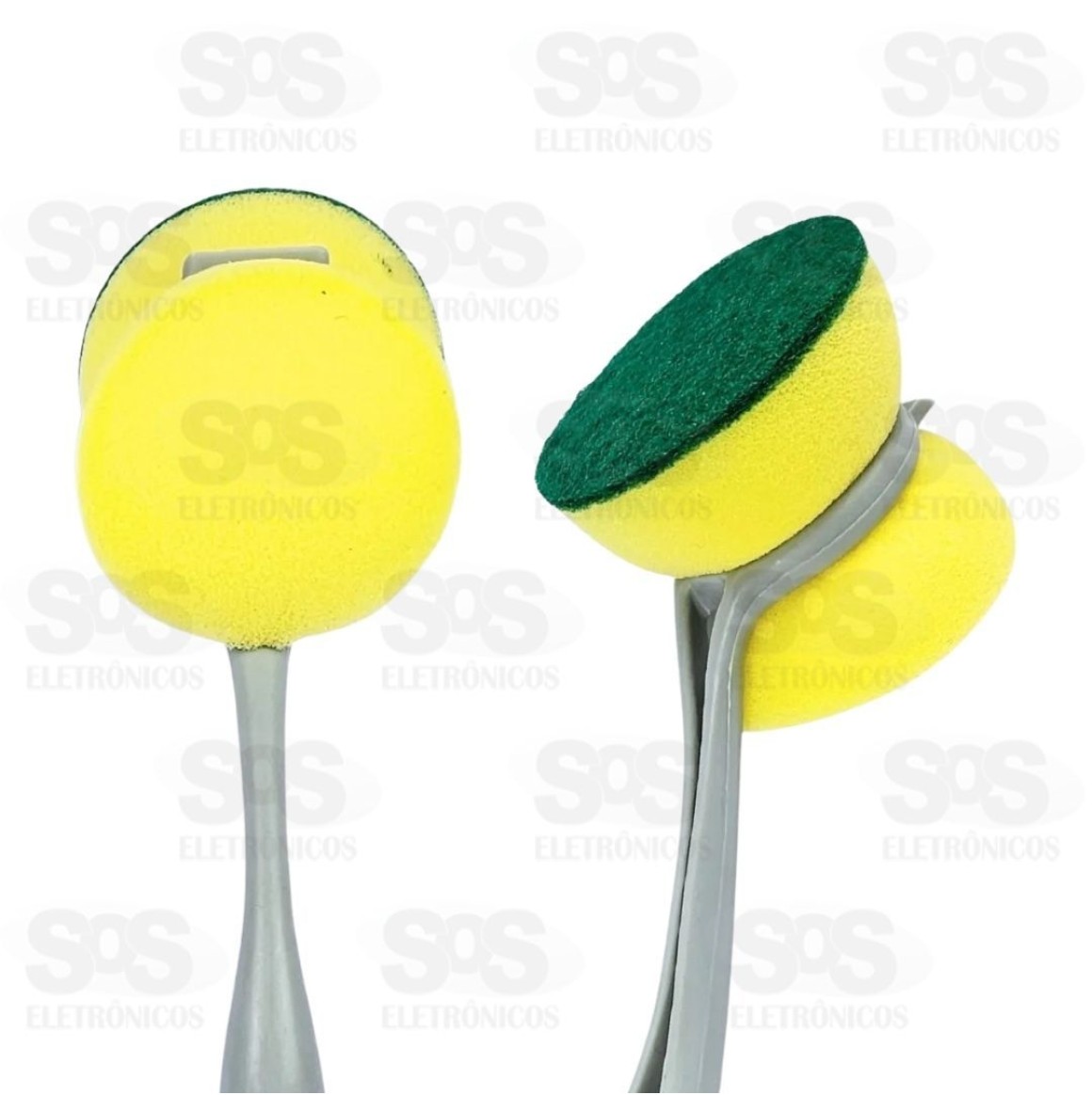 Tem lado macio para não riscar e outro para limpeza pesada.
