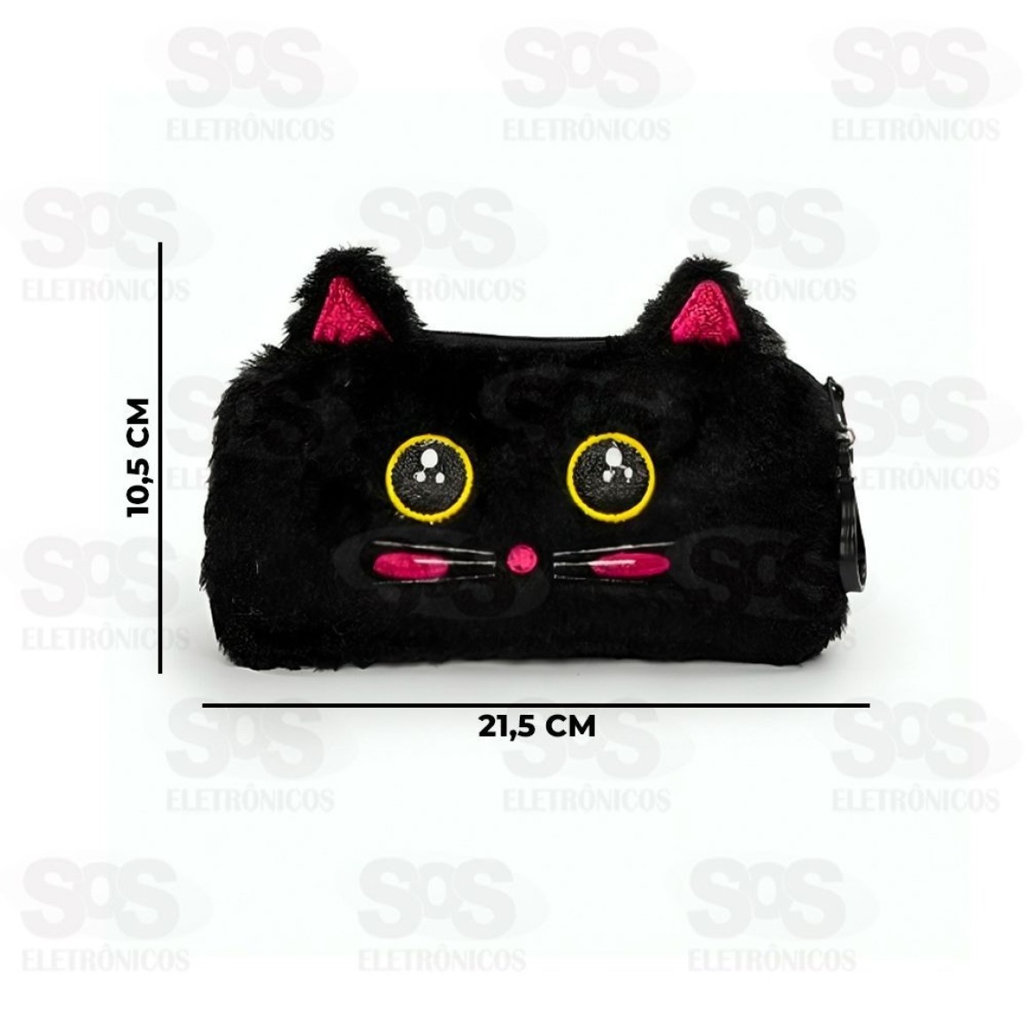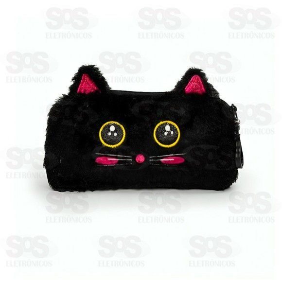 Estojo Escolar Pelúcia Gato Preto Polibrinq SCB114