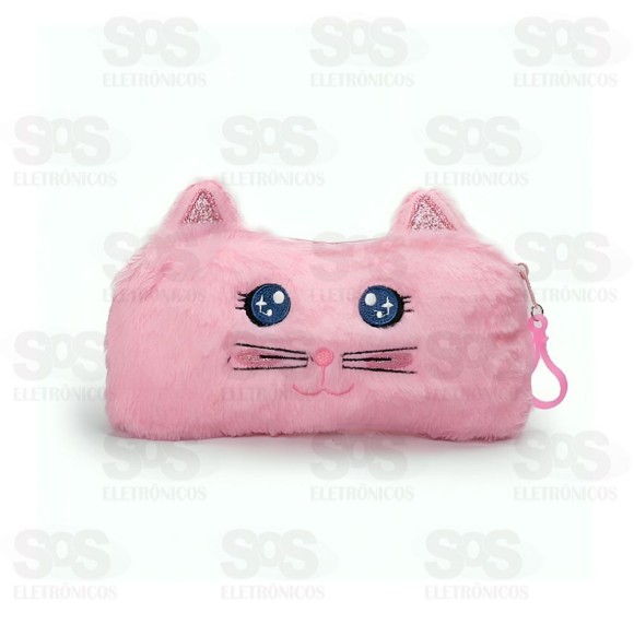 Estojo Escolar Pelúcia Gato Rosa Polibrinq SCB132