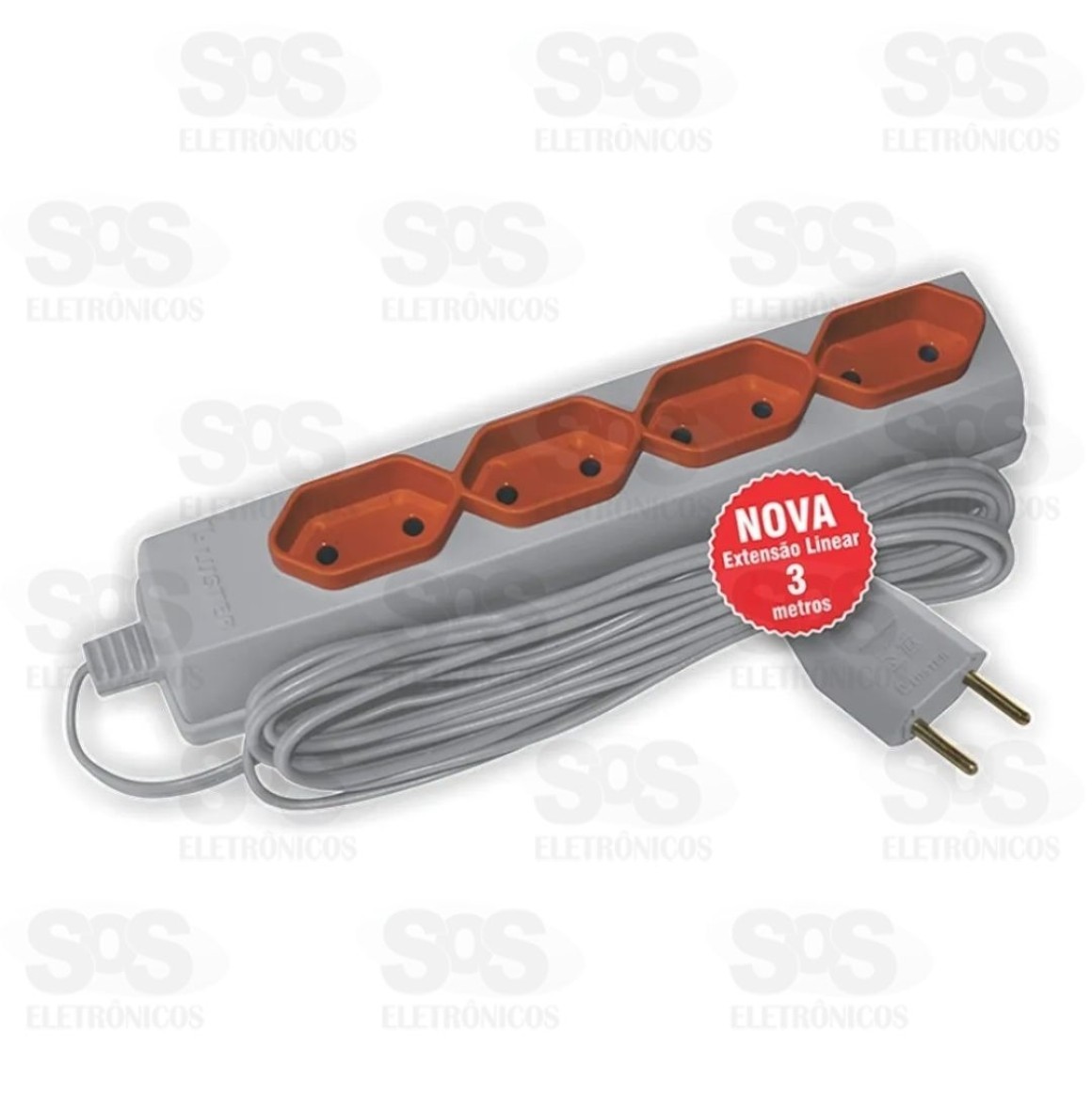 Extensão 4 Tomadas 2 Pinos 3 Metros Luster 2170Extensão elétrica com 4 tomadas.Cabo de 3 metros.Tomadas de 2 pinos.Corrente máxima: 10A