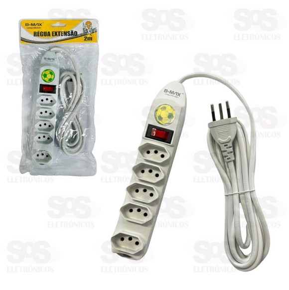 Extensão 5 Tomadas Cabo 2 Metros B-Max BM-8686