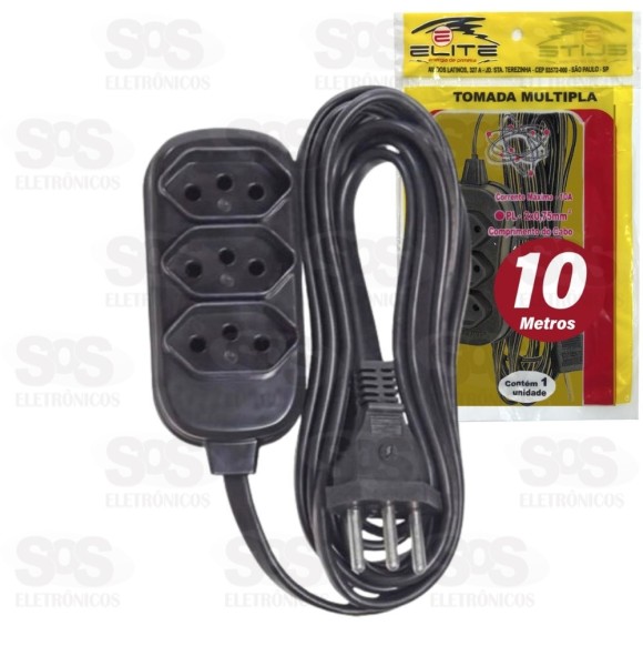 Extensão De 10 Metros 10A Com 3 Tomadas Elite