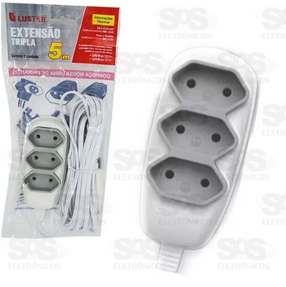Extensão elétrica 3 tomadasCabo PP bitola 0,75 300v com 5 metrosTomada 2 pinos Capacidade Máxima 10ACom selo do Inmetro