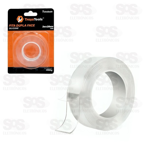 Fita Adesiva Dupla Face Transparente 2 Metros TroyaTools TRY-0103