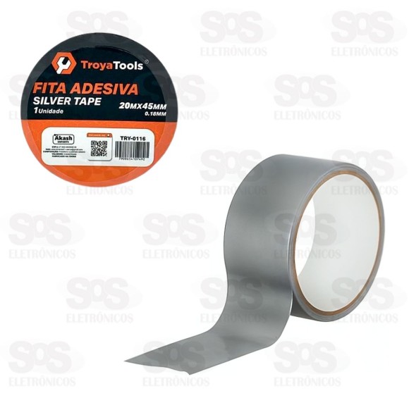 Fita Adesiva Silver Tape 20Mx45MM Cinza TroyaTools TRY-0116