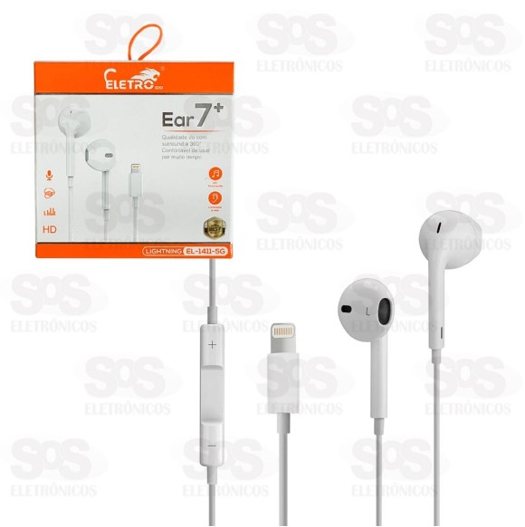 Fone De Ouvido Ear7+ Com Fio Para Iphone Eletromex EL-1411-5g