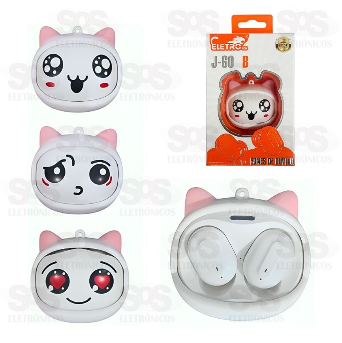 Fone De Ouvido Muda Rostinho Fofo Bluetooth Eletromex J-60B