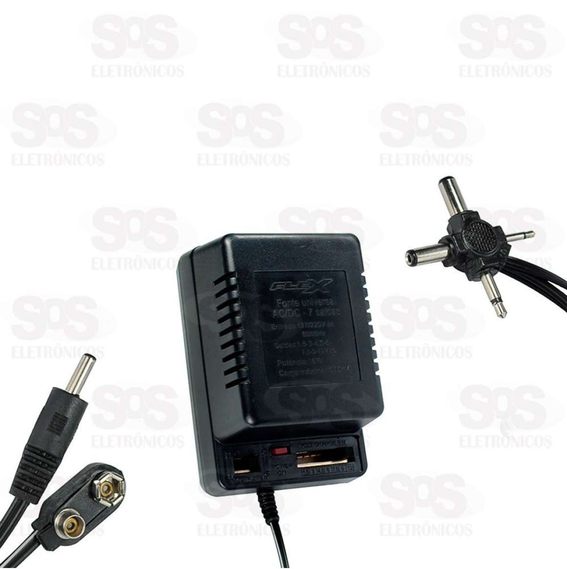 Possui 7 voltagens diferentes: 1.5 / 3 / 4.5 / 6 / 7.5 / 9 / 12.