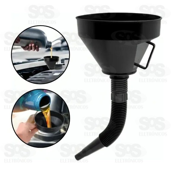 Fabricado em plástico PP resistente e durável, este funil possui bico flexível, proporcionando praticidade e precisão no manuseio de líquidos.