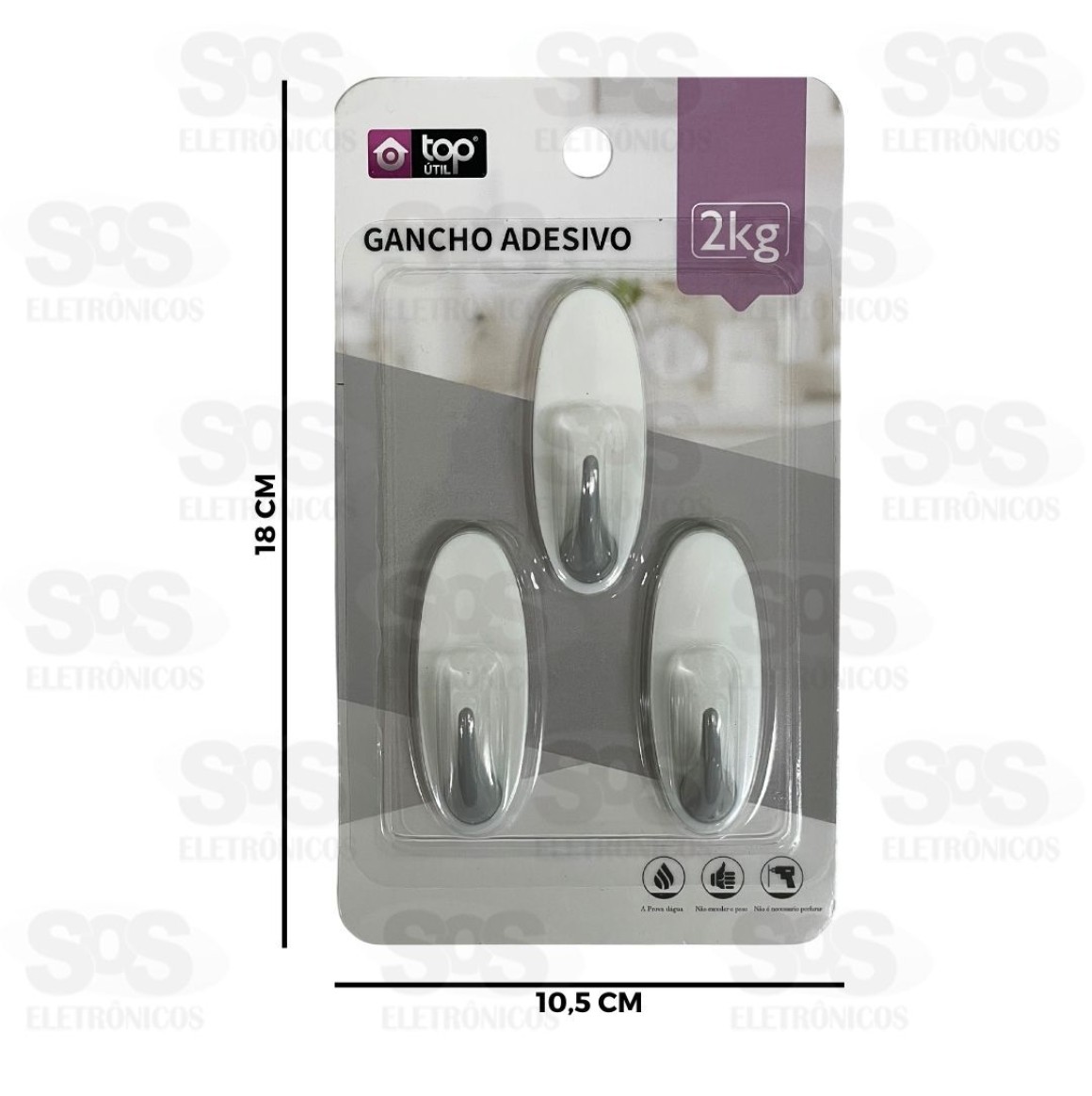 Ganchos Multiuso Adesivo 3 Unidades Top Útil TOP2002