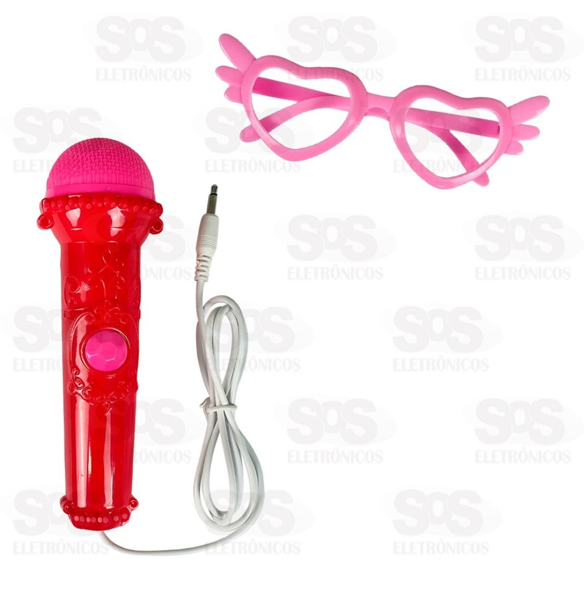 Possui cordinha para pendurar no pescoço e um óculos pop star.
