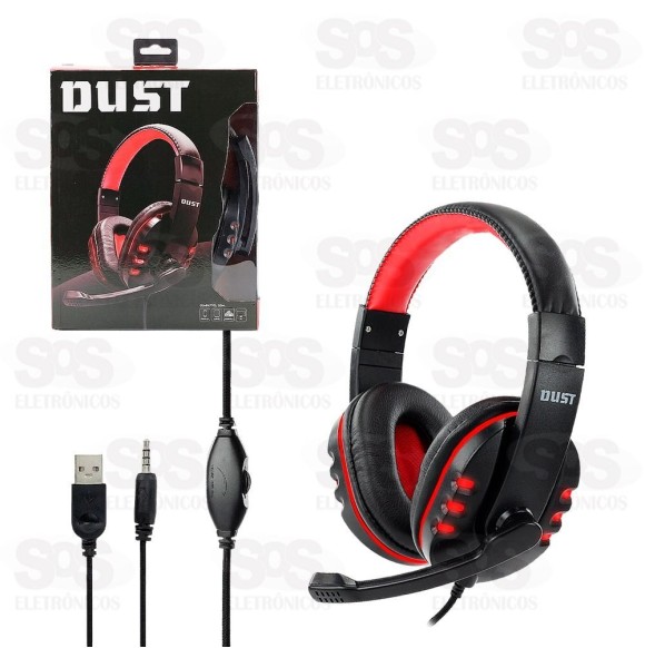 Headset Gamer Fone de Ouvido C/ Microfone LED Vermelho Dust LW031