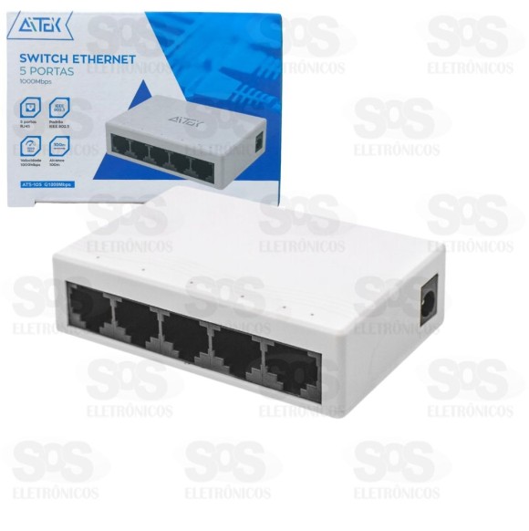 O ATS-105 opera em velocidades de 10/100Mbps, garantindo transferência de dados rápida e estável para navegação na internet, compartilhamento de arquivos e comunicação entre dispositivos na rede. Alimentado por uma fonte de 5V, ele é extremamente eficiente e de fácil instalação, sem a necessidade de configurações complexas.