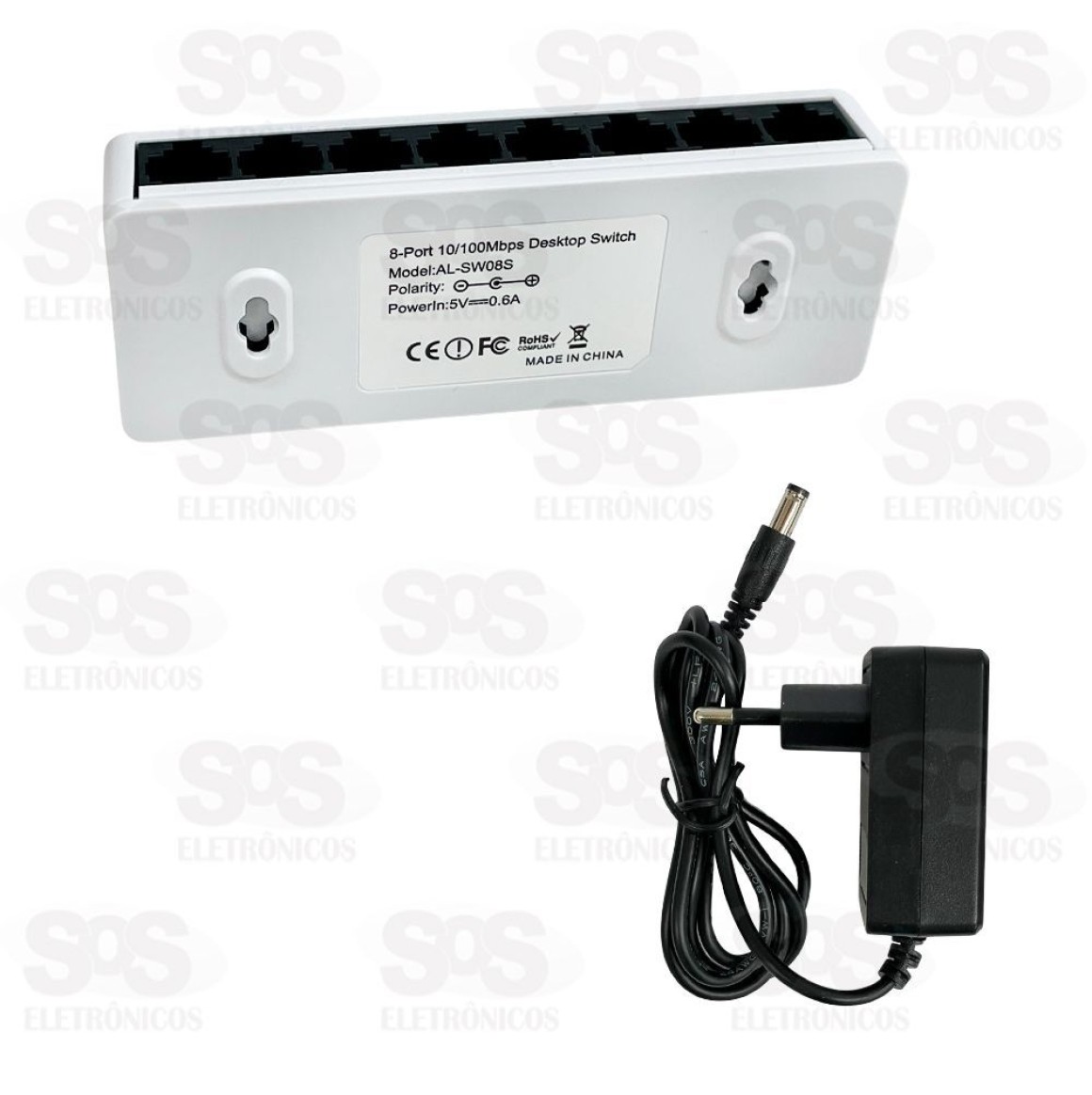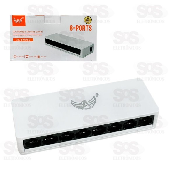 Hub Switch RJ45 Com 8 Portas 100Mbps Altomex AL-SW08S