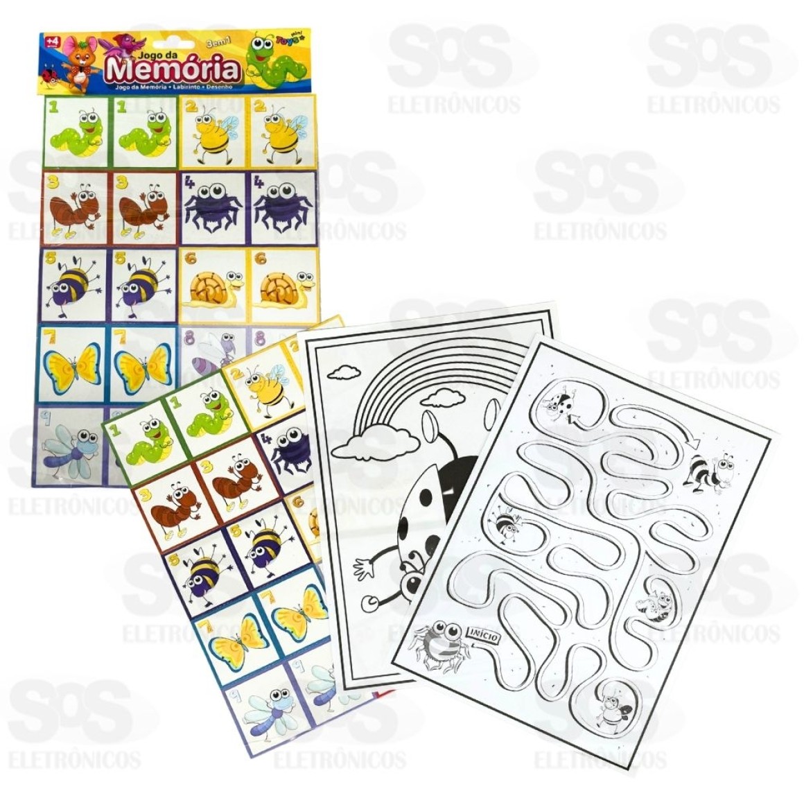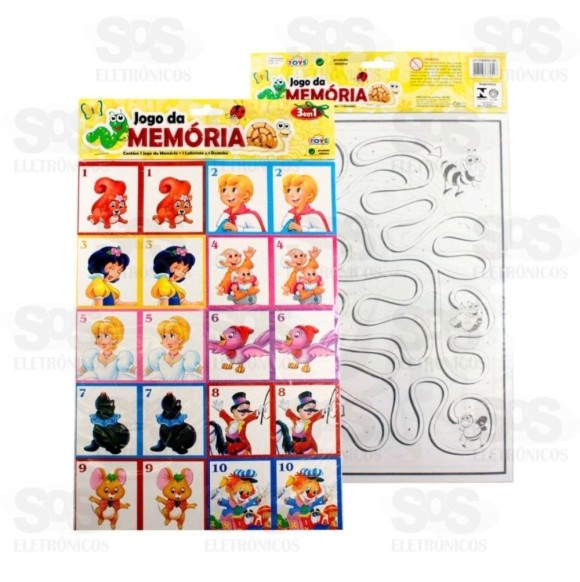 Kit completo de diversão são 3 em 1; jogo da memória, labirinto e desenho