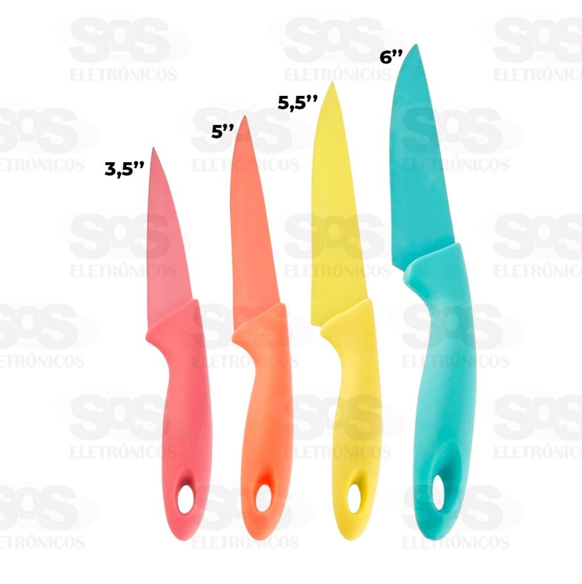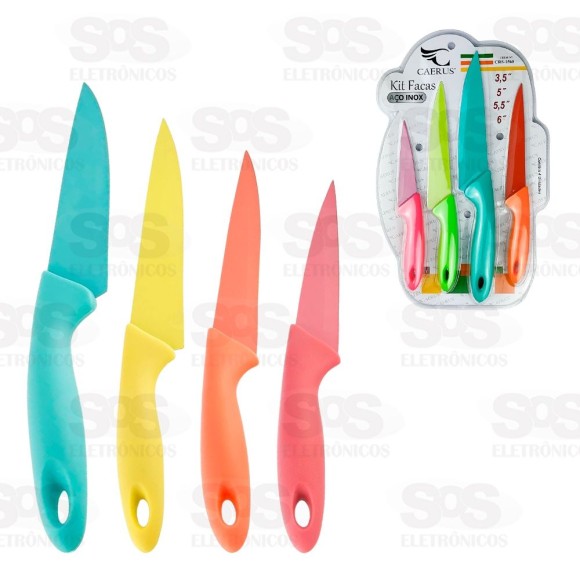 Jogo de Facas Coloridas Aço Inox Caerus CRS-1568Facas de cozinha multiuso coloridas de diferentes tamanhos.Lâminas afiadas feitas em aço inox.