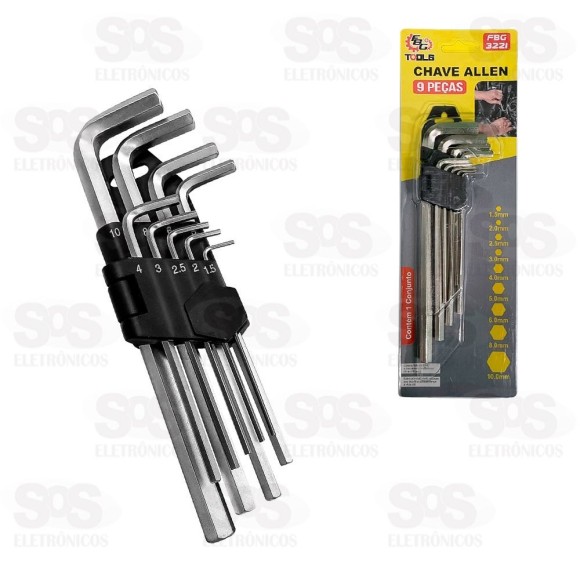 Kit Chave Allen longa 1,5mm-10mm Com 9 Peças FBG 3221