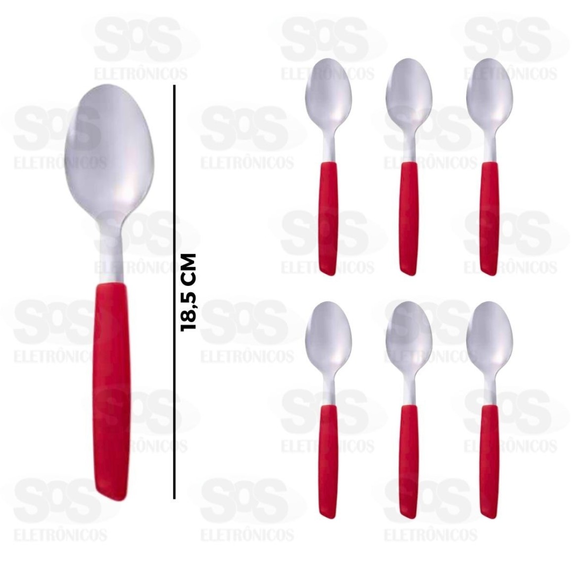 Colheres de mesa feitas em aço inox com cabo de plástico.