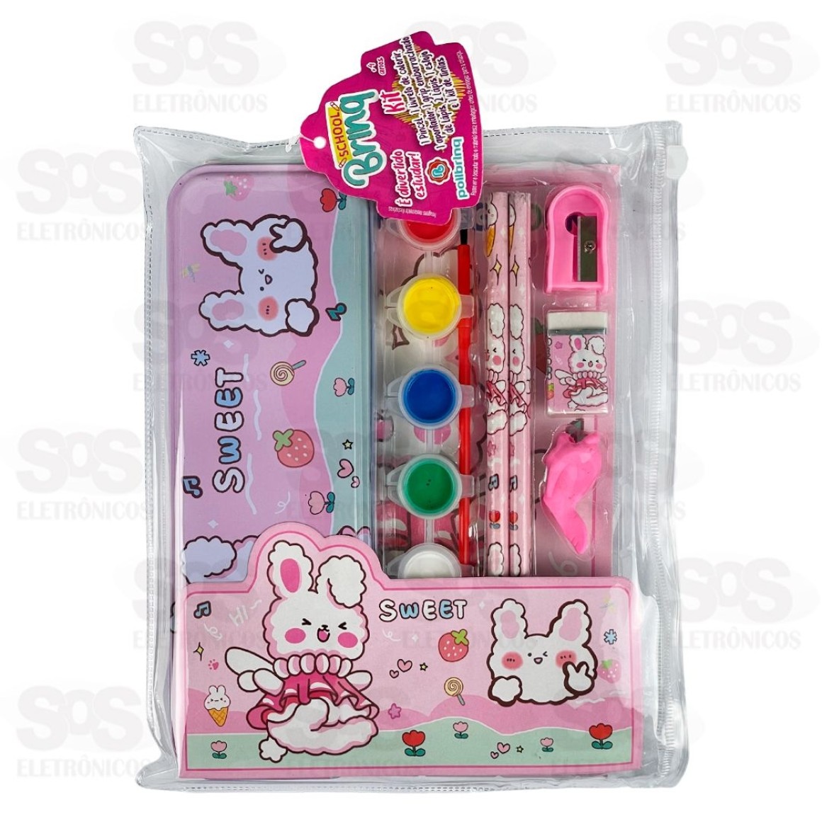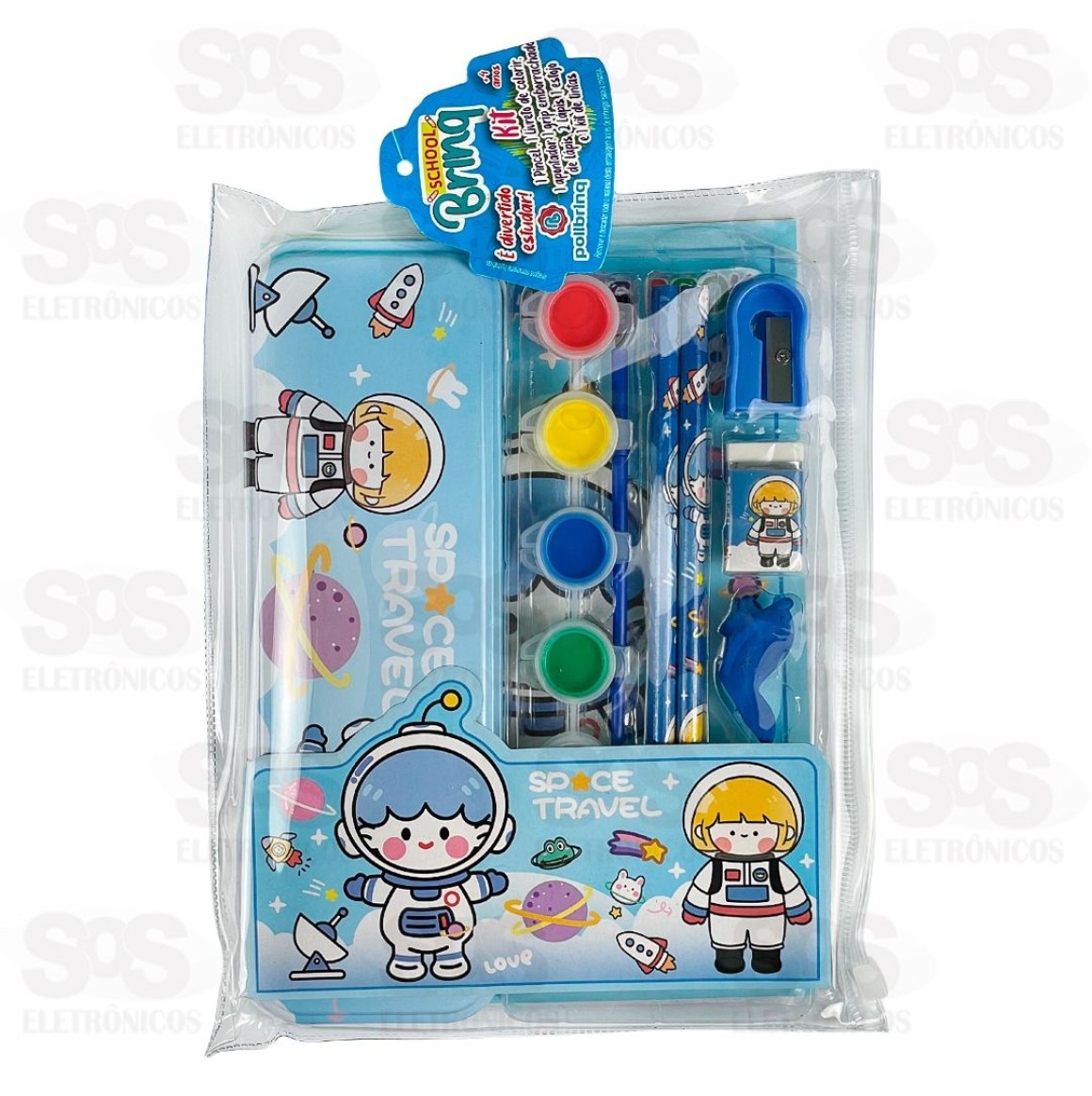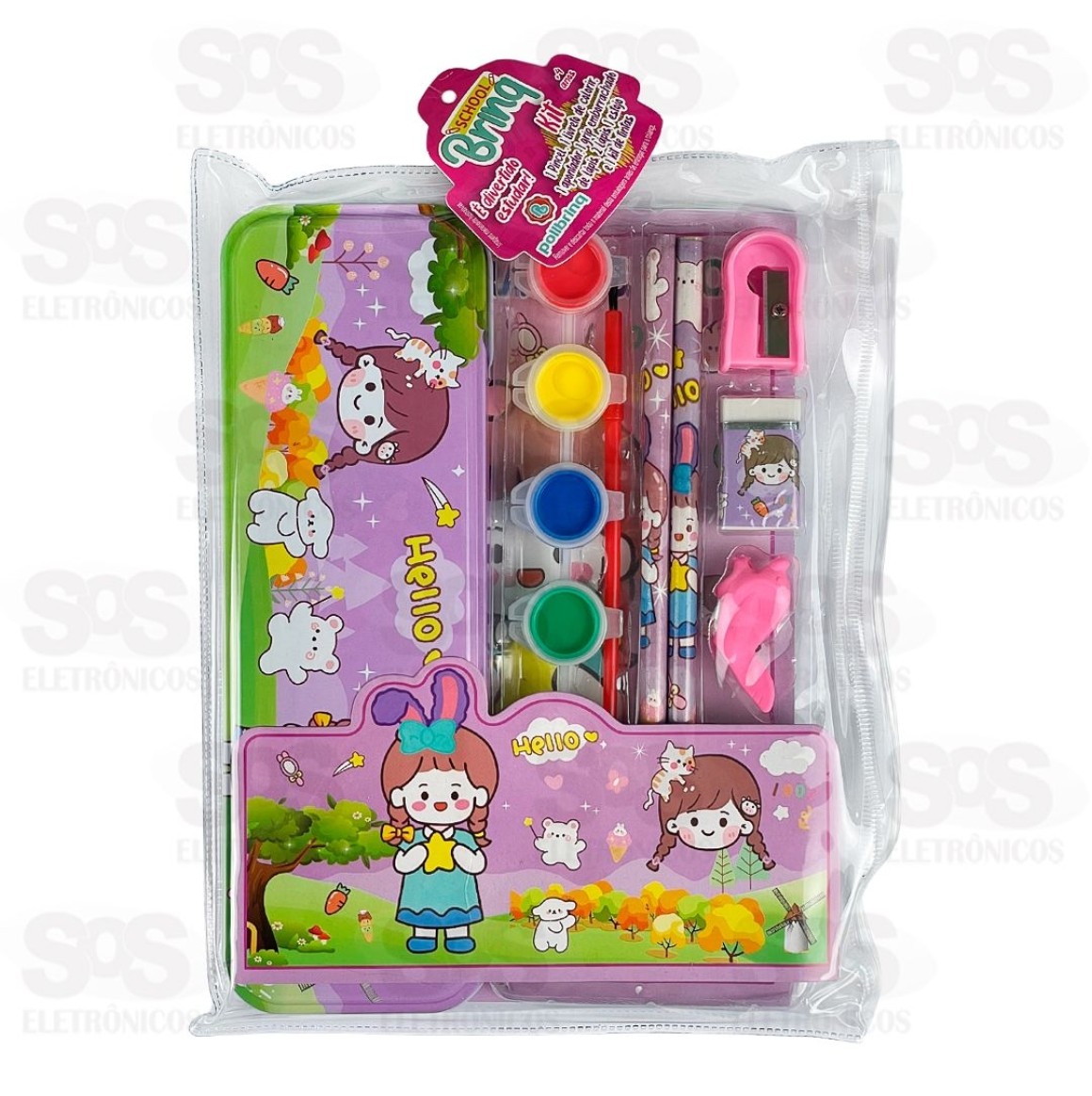 Kit Escolar 14 Peças Com Estojo e Guache Polibrinq SCB89