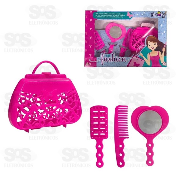 Kit divertido com acessórios para brincar de criar lindos penteados, escovar os cabelos e passear com a bolsinha.