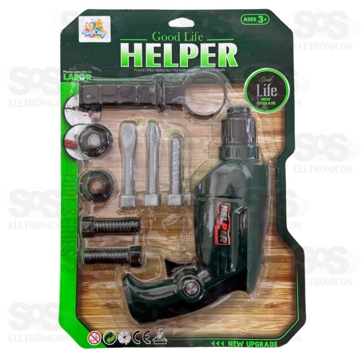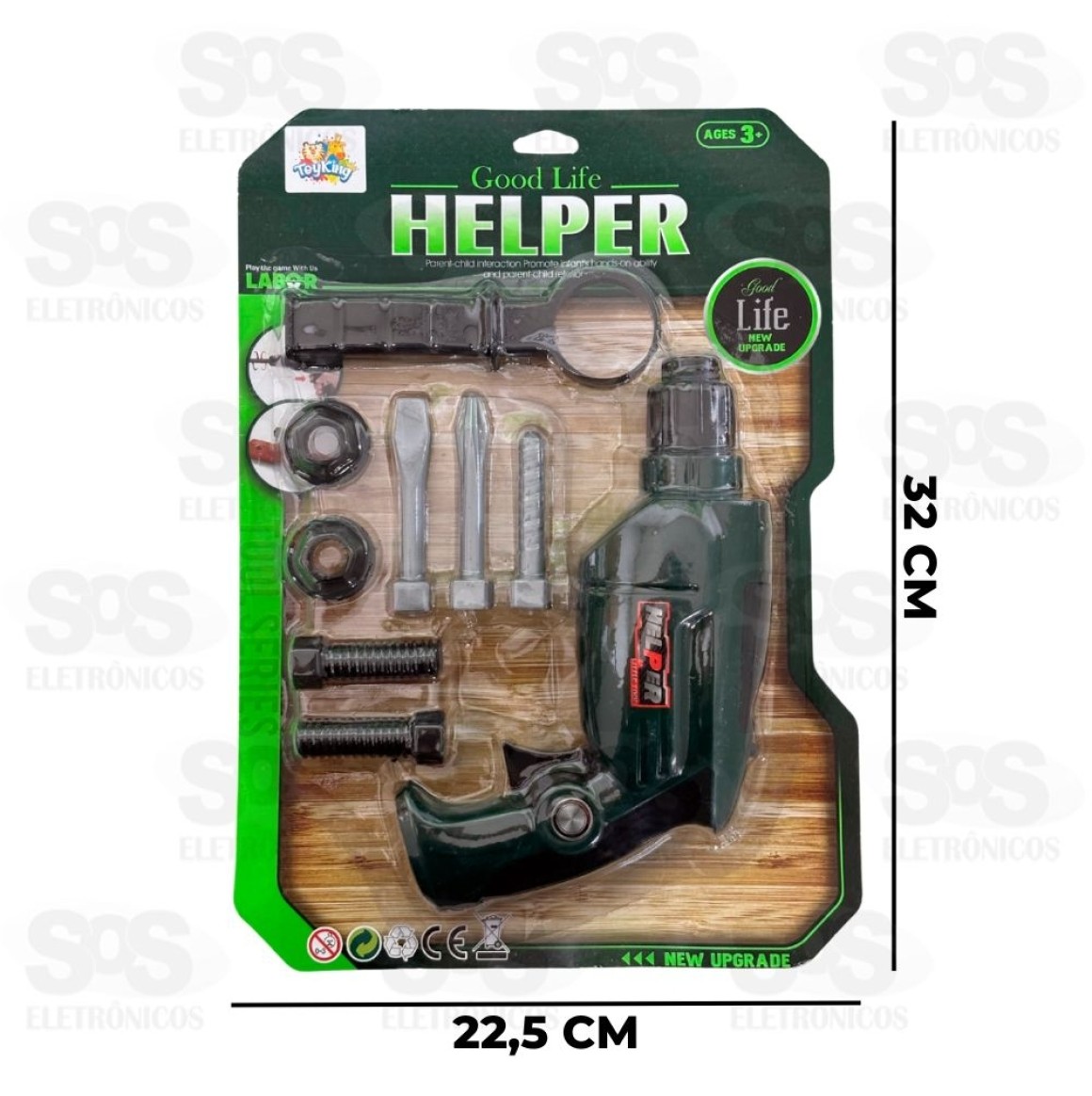 Acompanha uma parafusadeira e mais 8 acessórios que as crianças vão adorar.