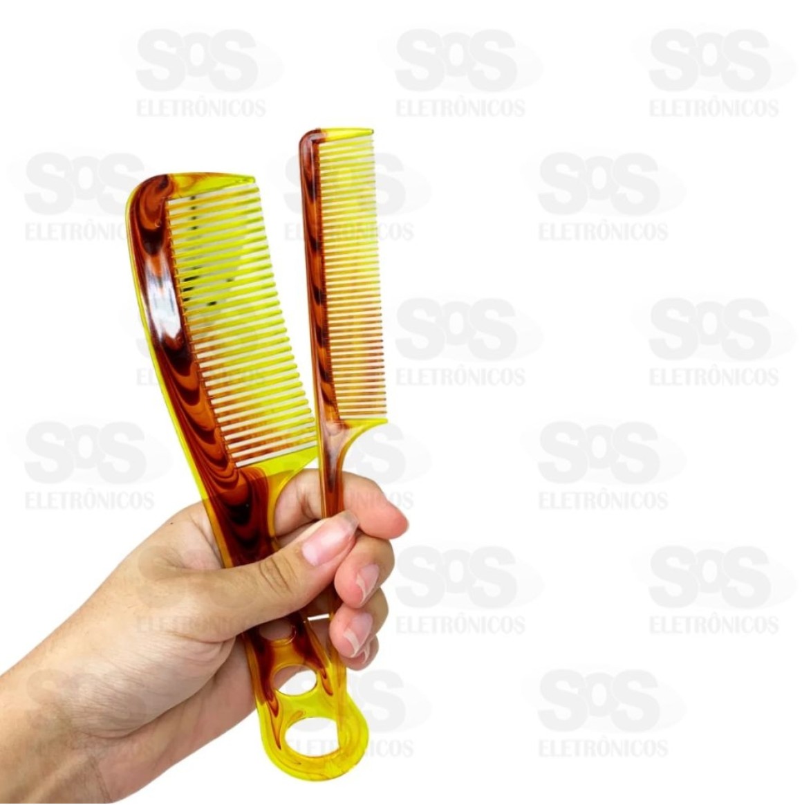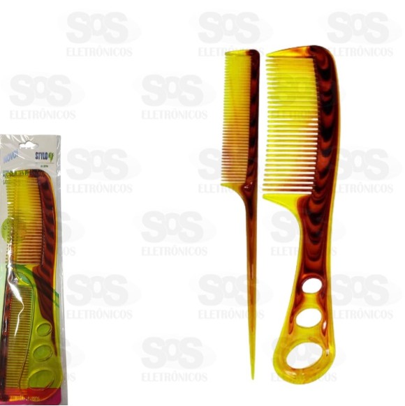 Tipo de produto: pente de plastico estreito/largo nº3 marrom com cabo kit com 2 pecas