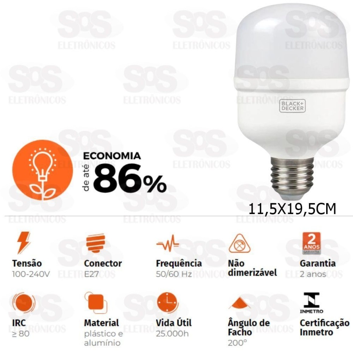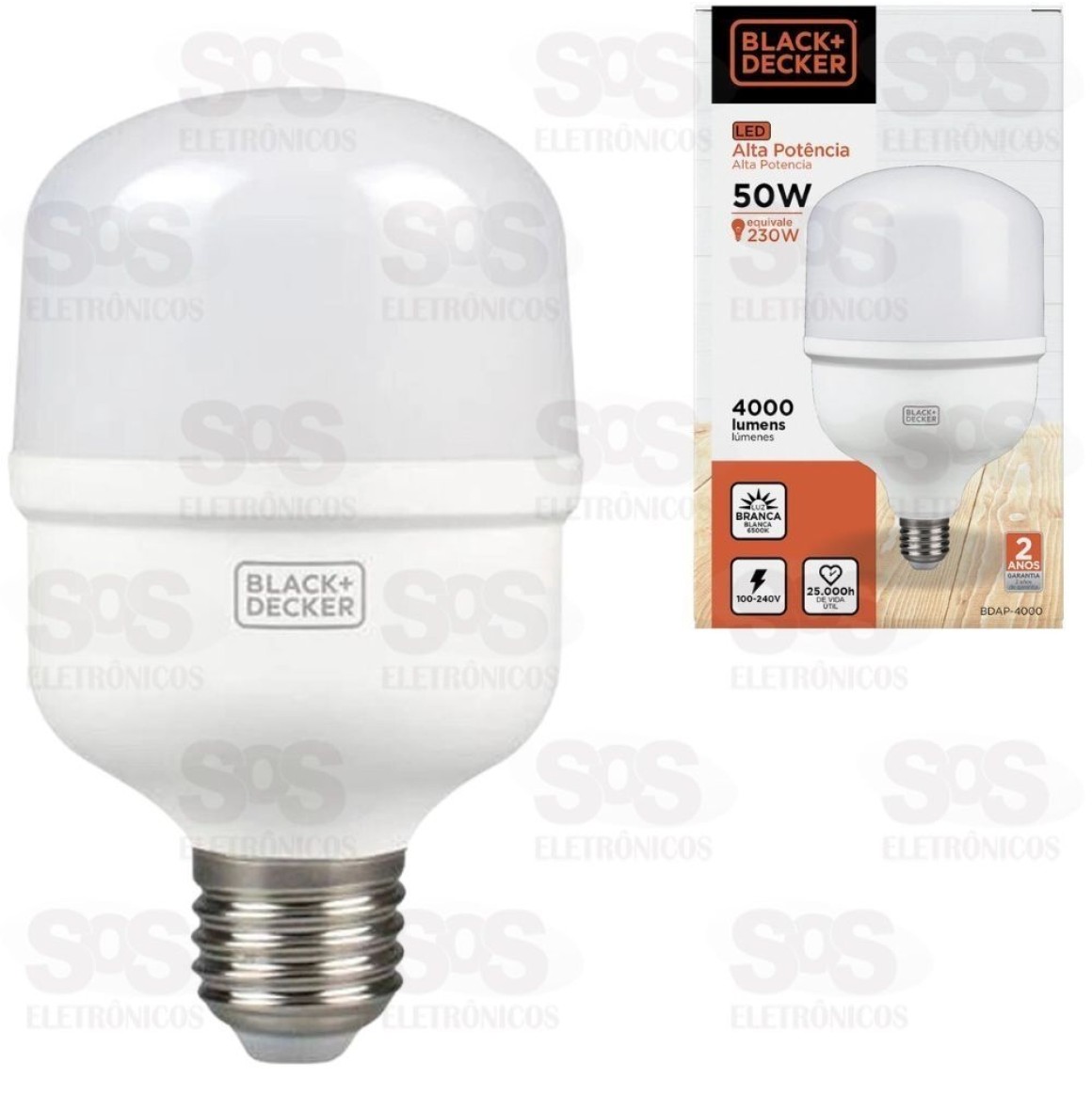 Lâmpada LED 50W 4000 Lúmens Alta Potência Black Decker BDAP-4000