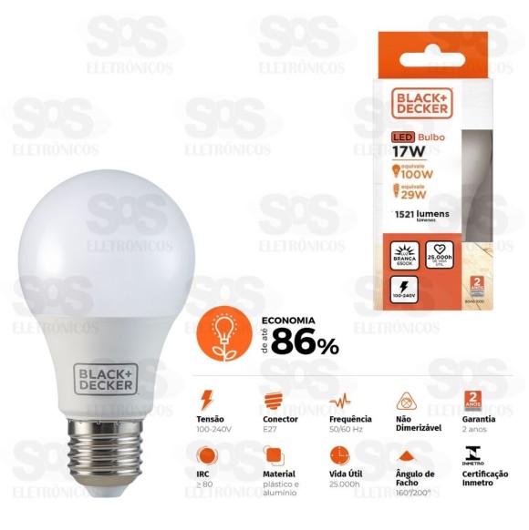 Lâmpada LED Bulbo 17W E27 Luz Branca Black+Decker BDA6-1500