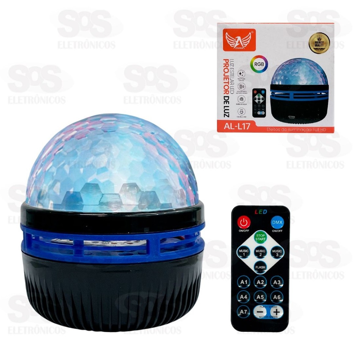 Com sensor sonoro que muda o efeito de acordo com a música.
