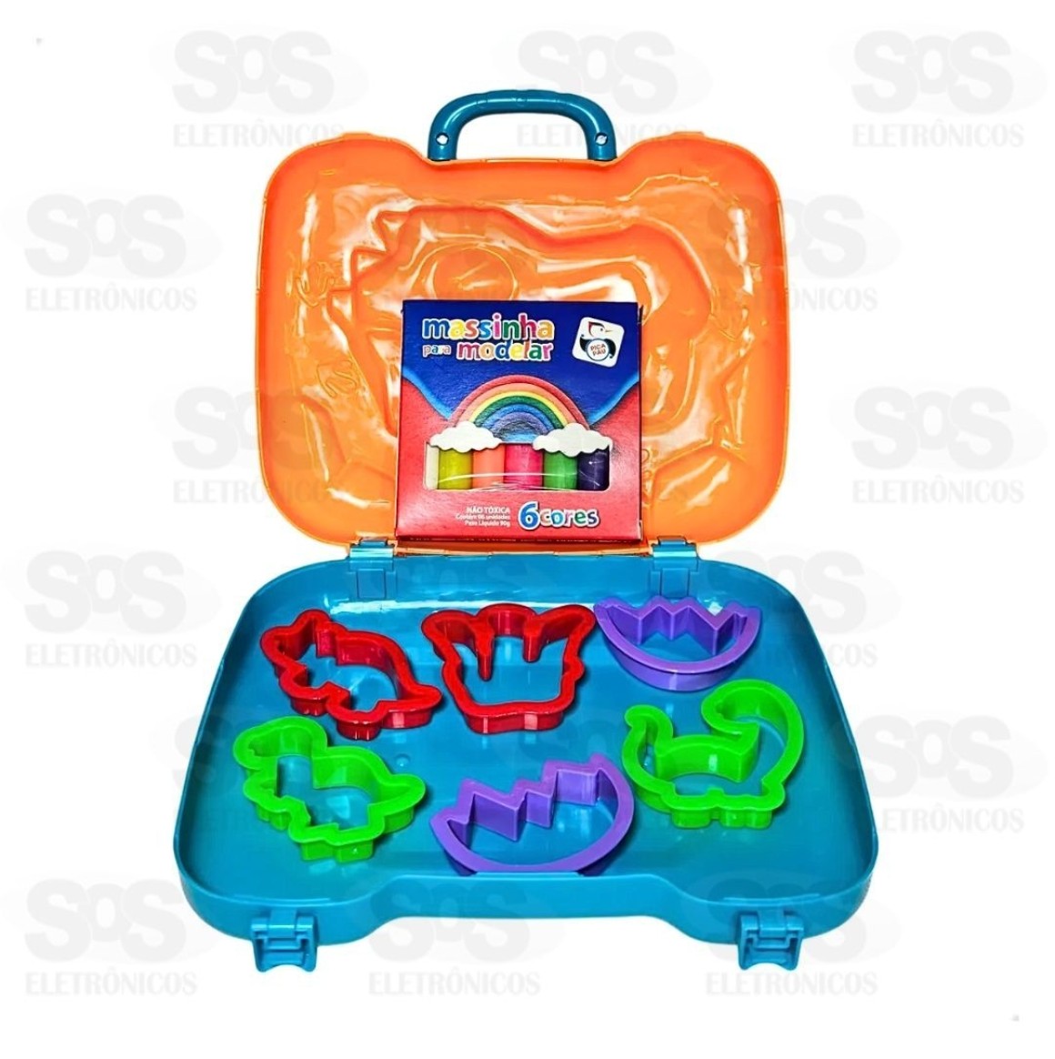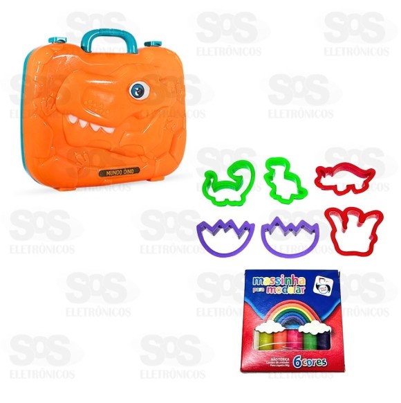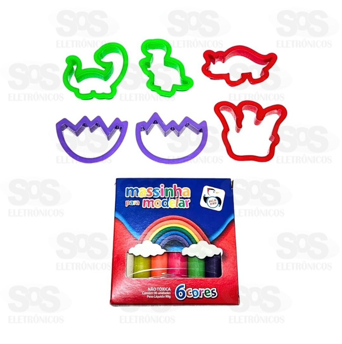 Kit com 6 massinhas de cores diferentes e 6 moldes em formatos de dinossauros, a diversão é garantida.