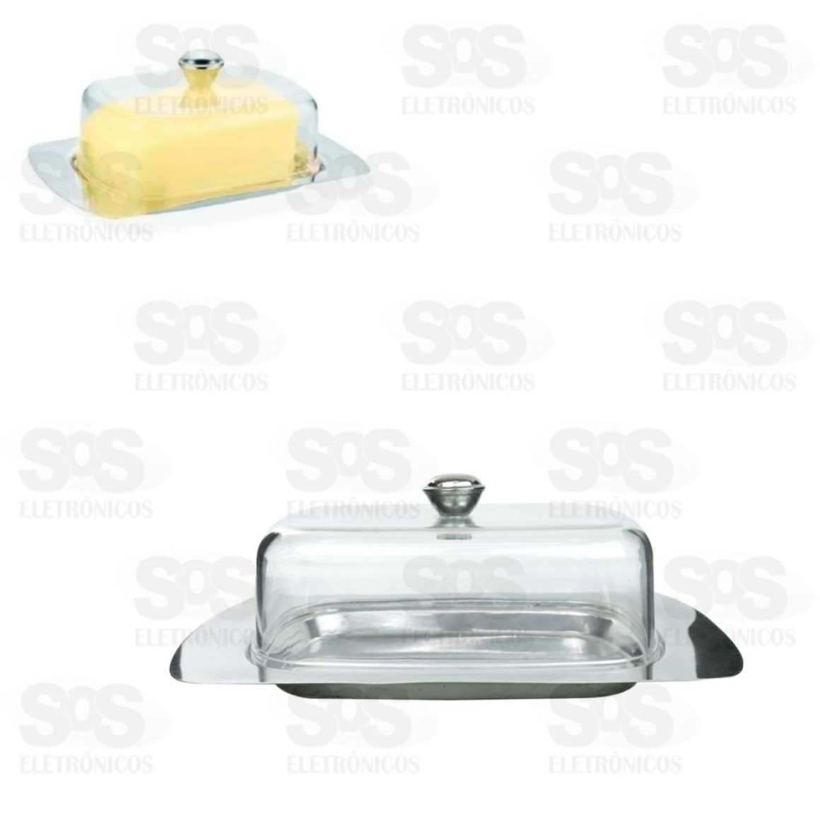 MANTEIGUEIRA DE INOX COM TAMPA DE PLÁSTICO 19CM - 1106