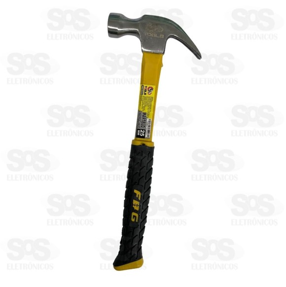 Martelo com cabo emborrachado que possui cabeça em aço forjado.