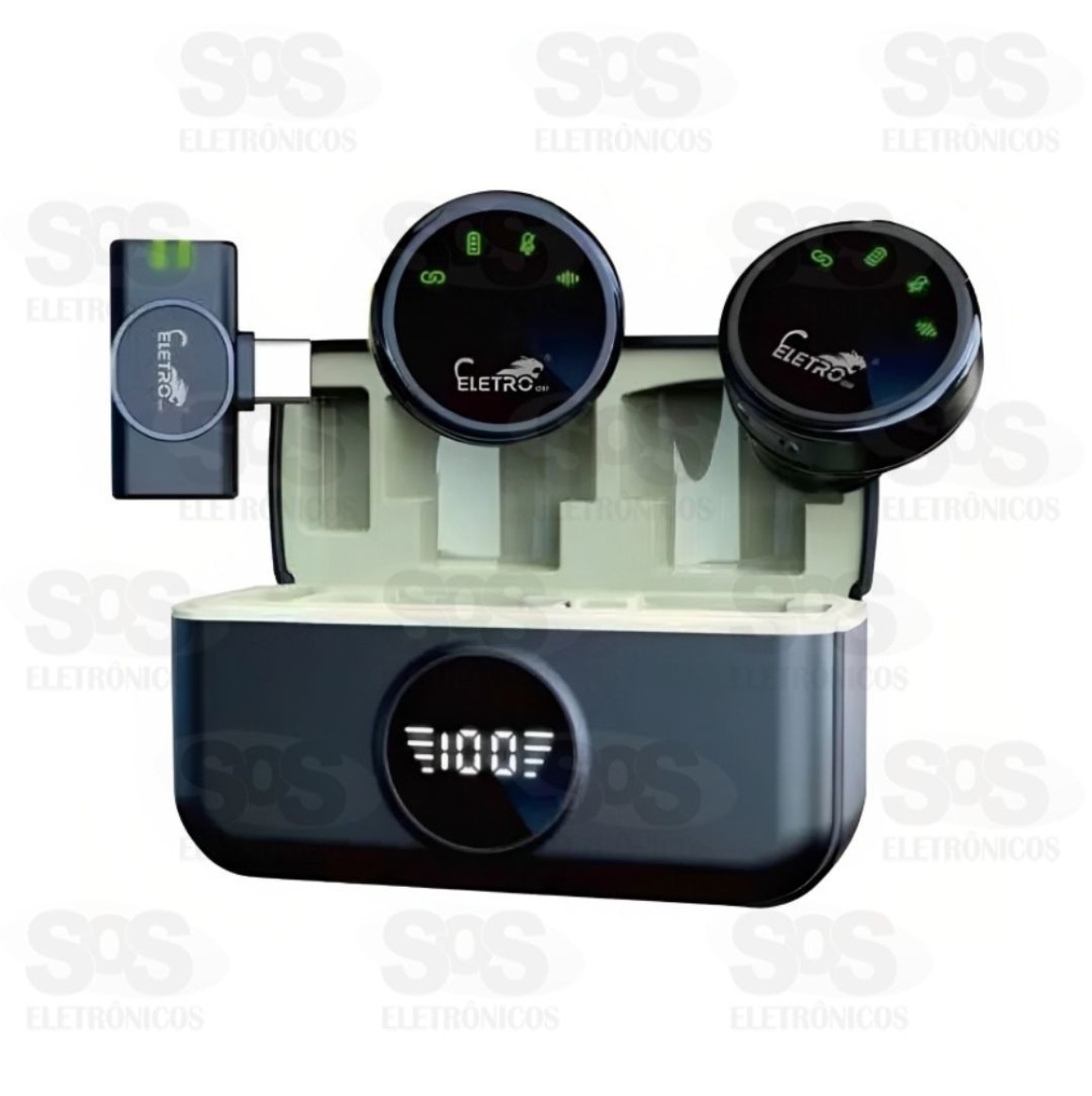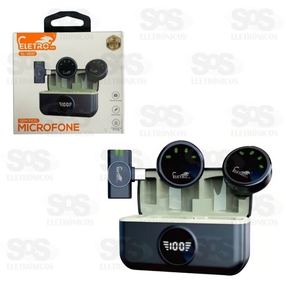 Microfone De Lapela Duplo Sem Fio Type C Eletromex EL-1837