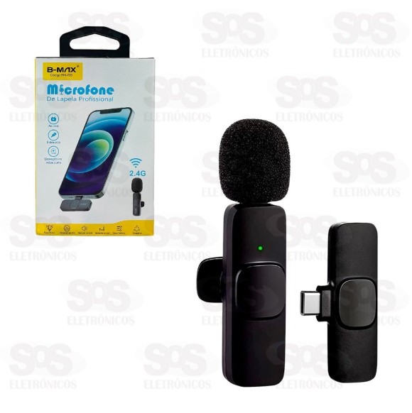 Microfone De Lapela Sem Fio Entrada Type C B-Max BM-220