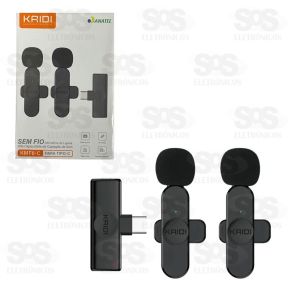 Microfone De Lapela Sem Fio Entrada Type C Kaidi KMF6-C