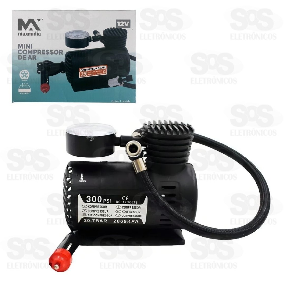 Mini Compressor De Ar Automotivo Portátil Maxmidia MAX-51266-1