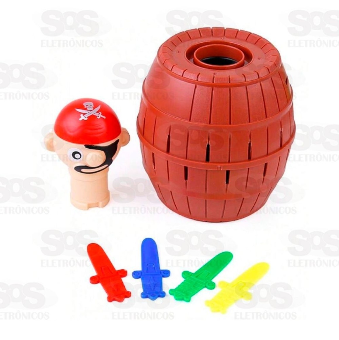 Acompanha 1 boneco pirata, 1 barril e espadas coloridas.