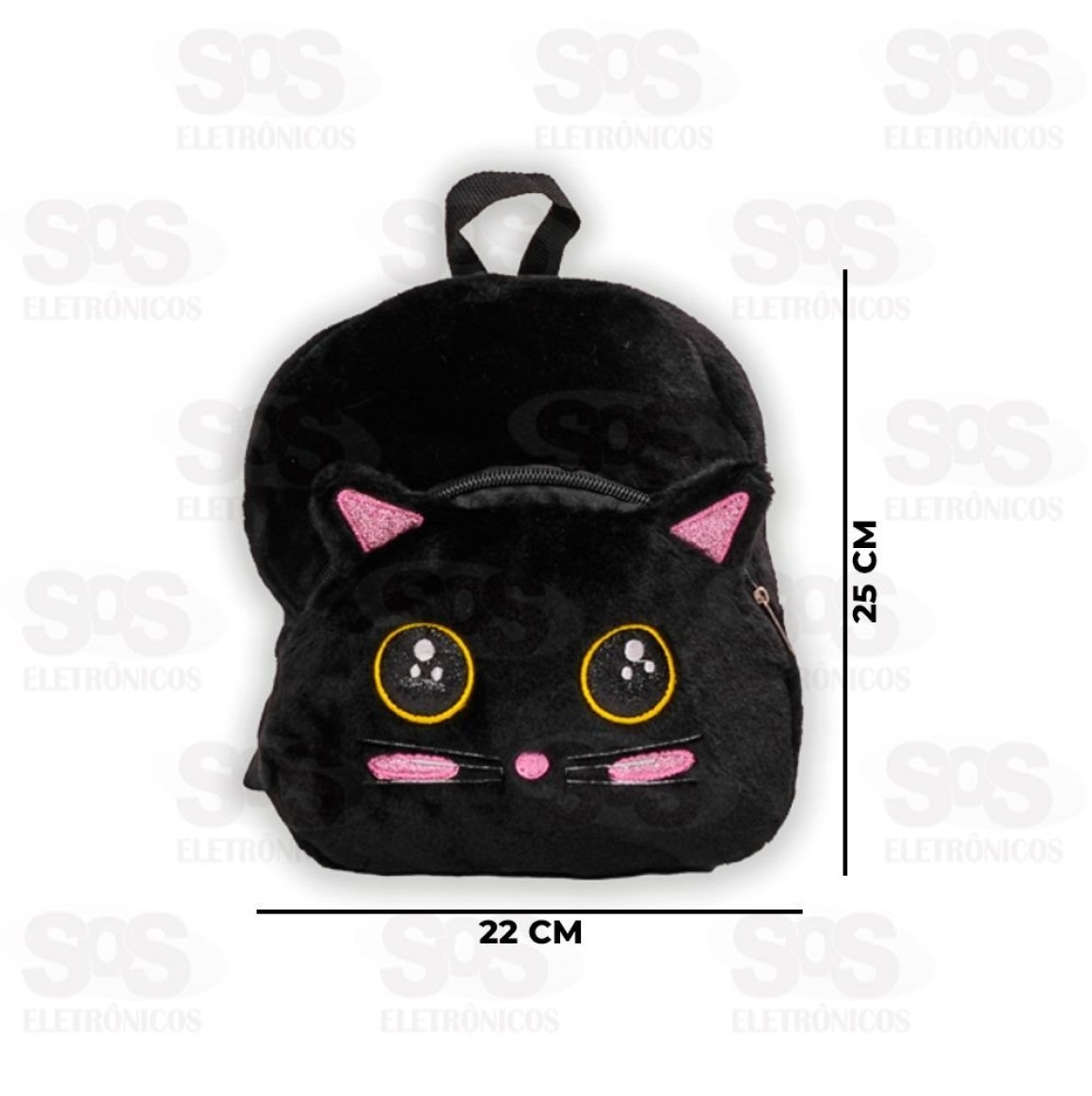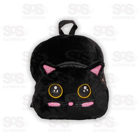 Mochila Escolar Pelúcia Gatinho Preto Polibrinq SCB116